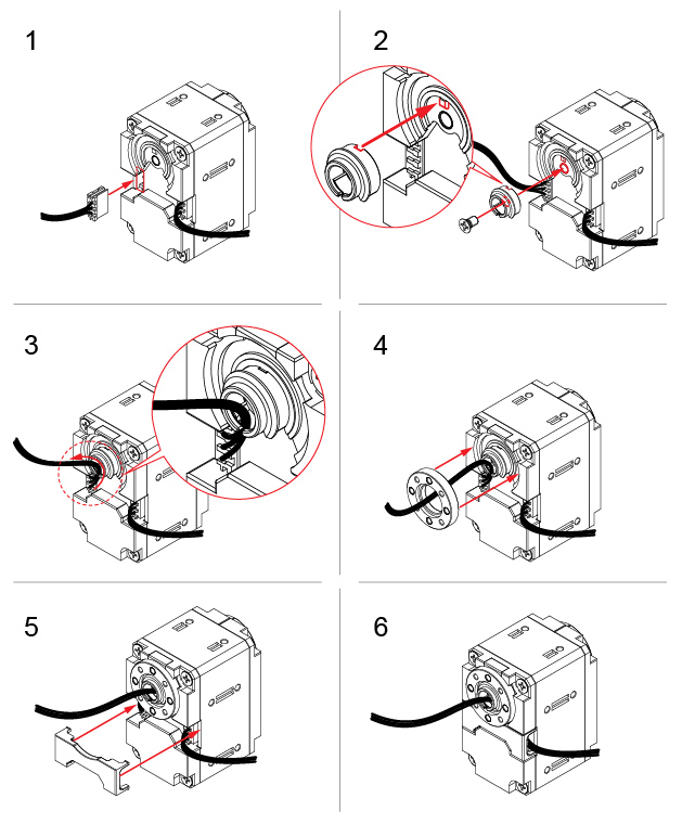 Unlike the XH / XM430, the hollow cable can be assembled without removing the case of the Dynamixel.